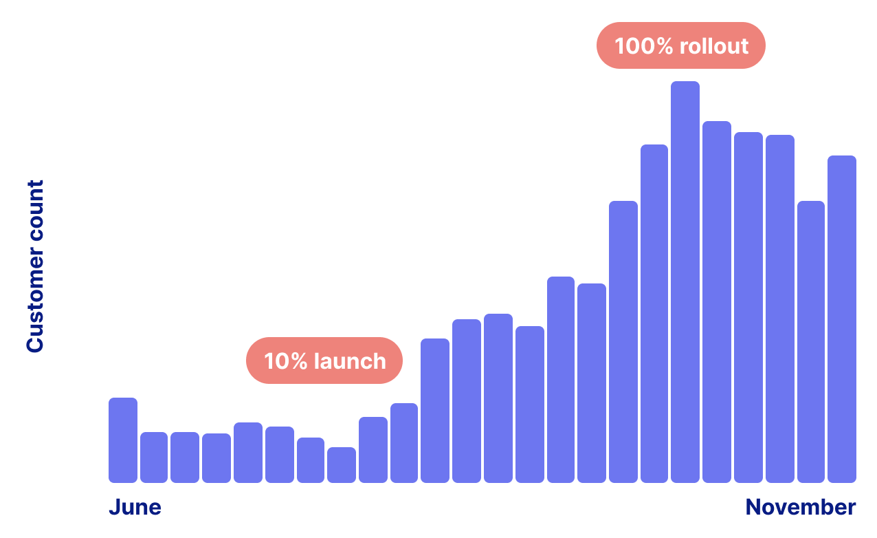 Our adoption strategy also proved to be highly effective with an average increase in adoption of ~500% per week at the peak of the rollout.
